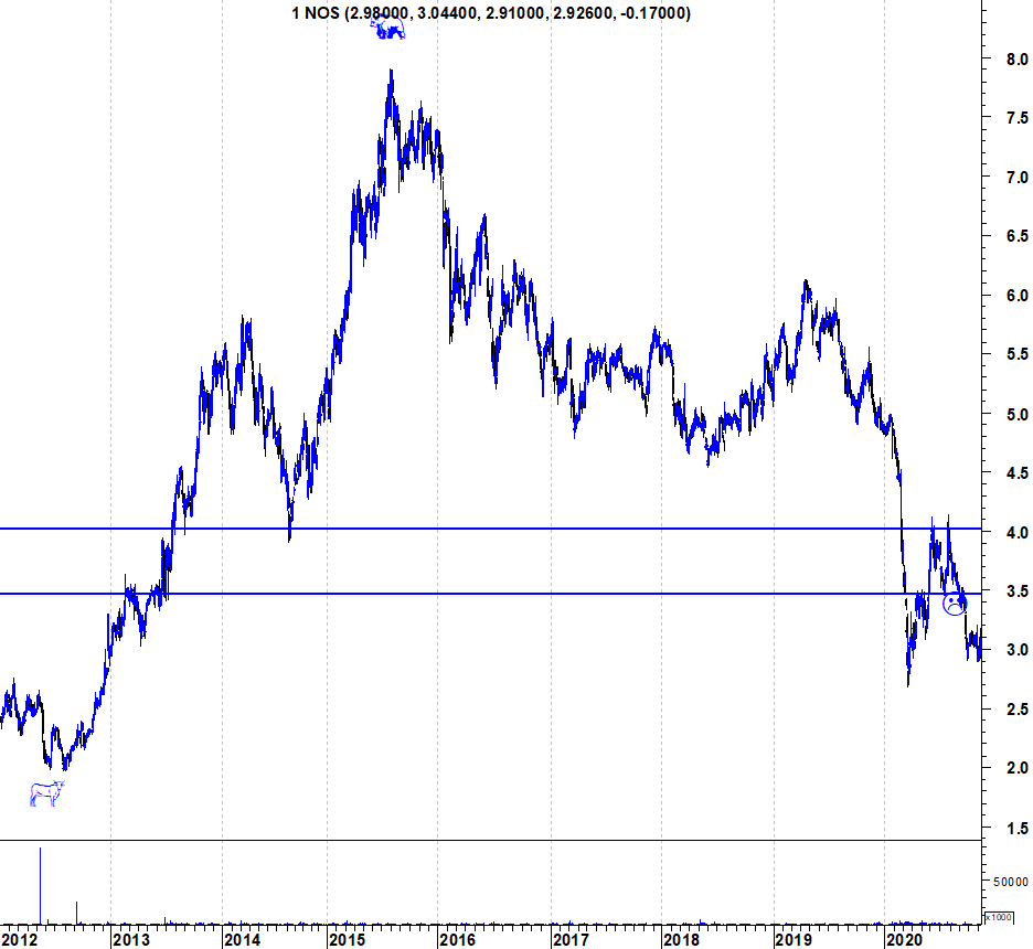 Deixo os gráficos actualizados da Nos que continua o seu "Bear Market".
