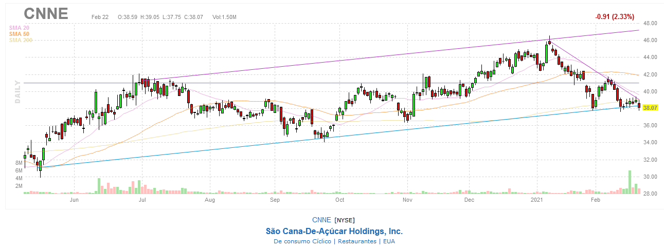 O confinamento proporciona-nos tempo disponível. Após muitas pesquisas que fiz, cheguei à CNNE. O boneco é daqueles que gosto de ver. A CNNE com 22482 funcionários, investe principalmente em restaurantes, em compatíveis com a tecnologia de serviços de saúde e serviços financeiros. Tem fundamentais equilibrados e nos últimos dias registou forte volume. Hoje, 22/fev divulgou os resultados do 4ºTrim que ainda não estão publicados, mas tudo indica que tenham sido razoáveis, pois reagiu positivamente no after. Vamos ver como se comporta no inicio da sessão de amanhã.