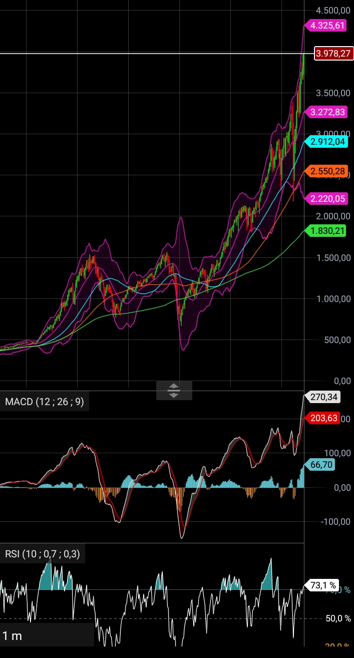 Realmente o mercado deverá dar razão a quem defende toque nos 4000 e a quem agendou uns ferros curtos nesse ponto. Depois se verá nos dias seguintes. Mas pensando no longo prazo, o SPX poderá querer marcar encontro com a MM200. Há muitos anos que não vai lá (verde), deve estar com saudade. Nunca esteve tão longe de casa...