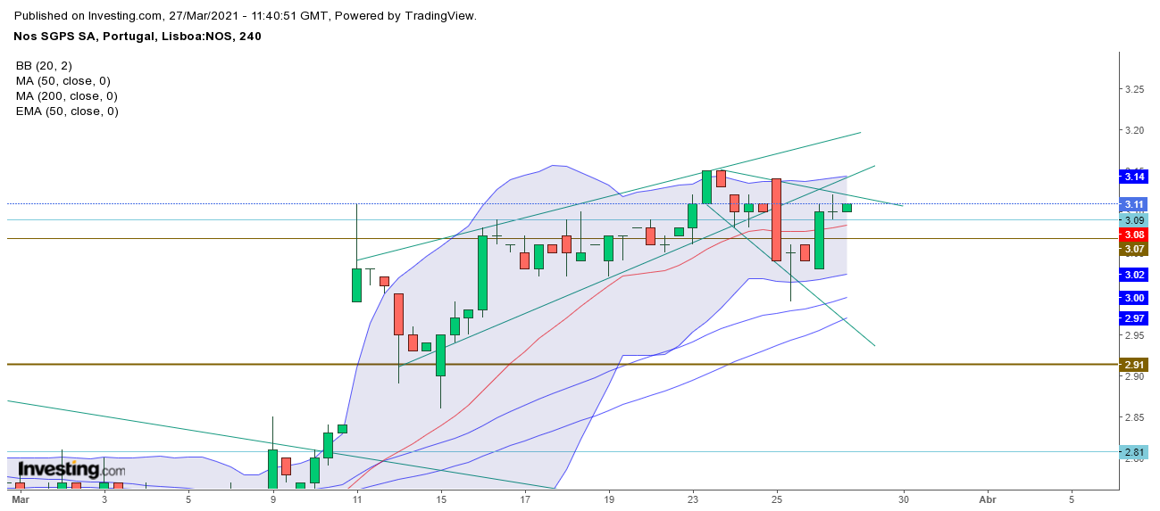 A Marshall Walace entrou curto e a NOS aguentou? Entao sao boas noticias. Hoje parece querer passar a zona dos 3.10. Se começa a subir e as posiçoes curtas tiverem de ser fechadas entao ainda melhor