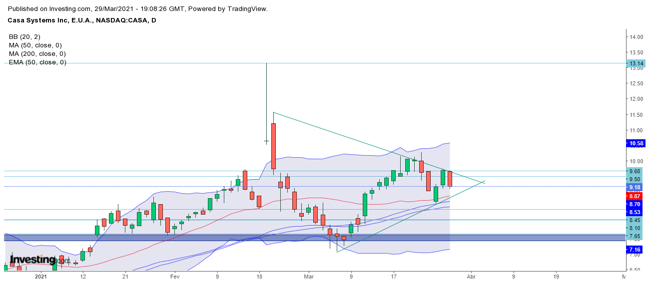 Parece que tens aí uma falling wedge, um pouco manhosa mas vá, com boa vontade..