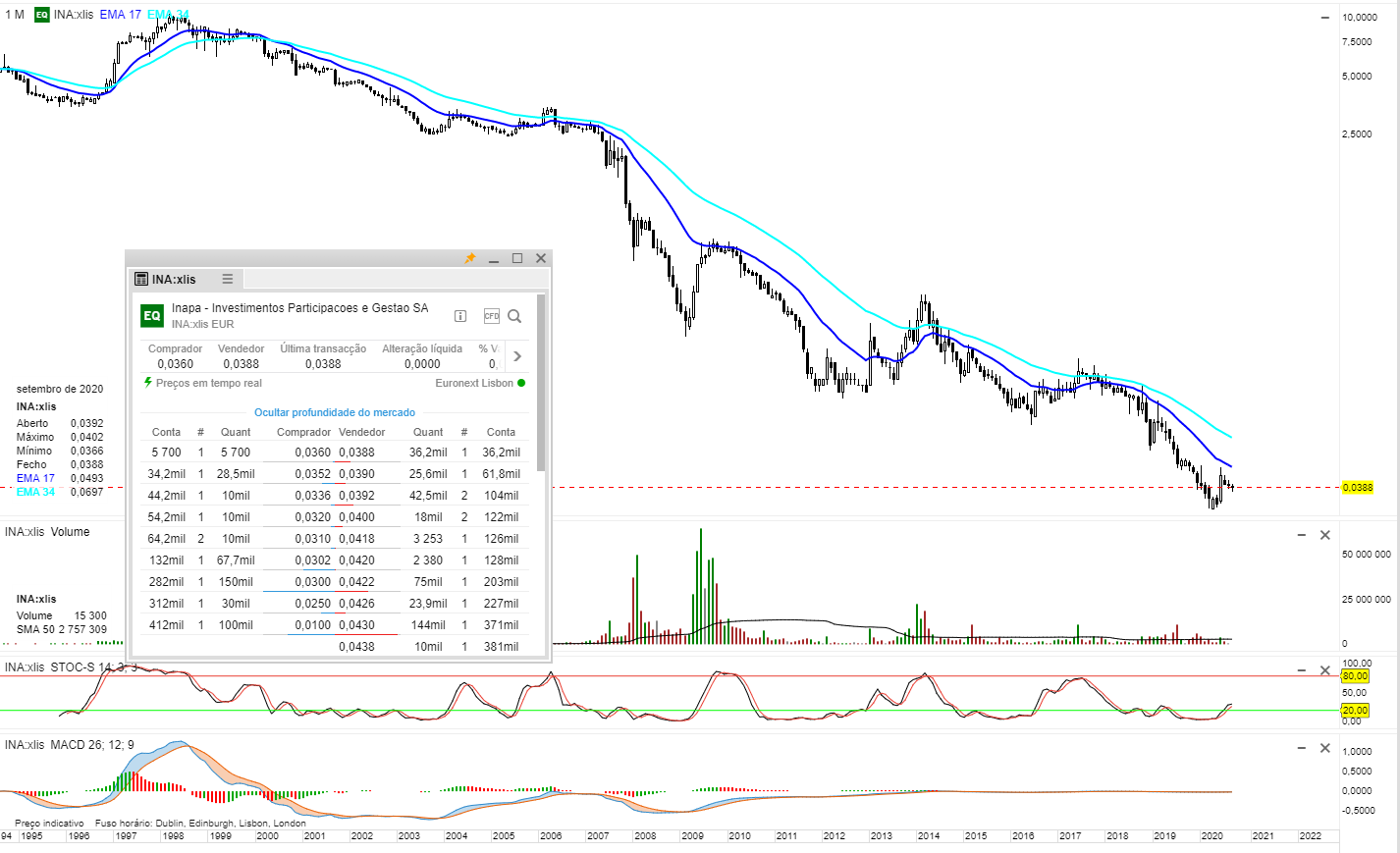 Depois de uma queda consecutiva de 83%, "parece " ter invertido o rumo. Pelo menos é isso que leio nos meus bonecos.