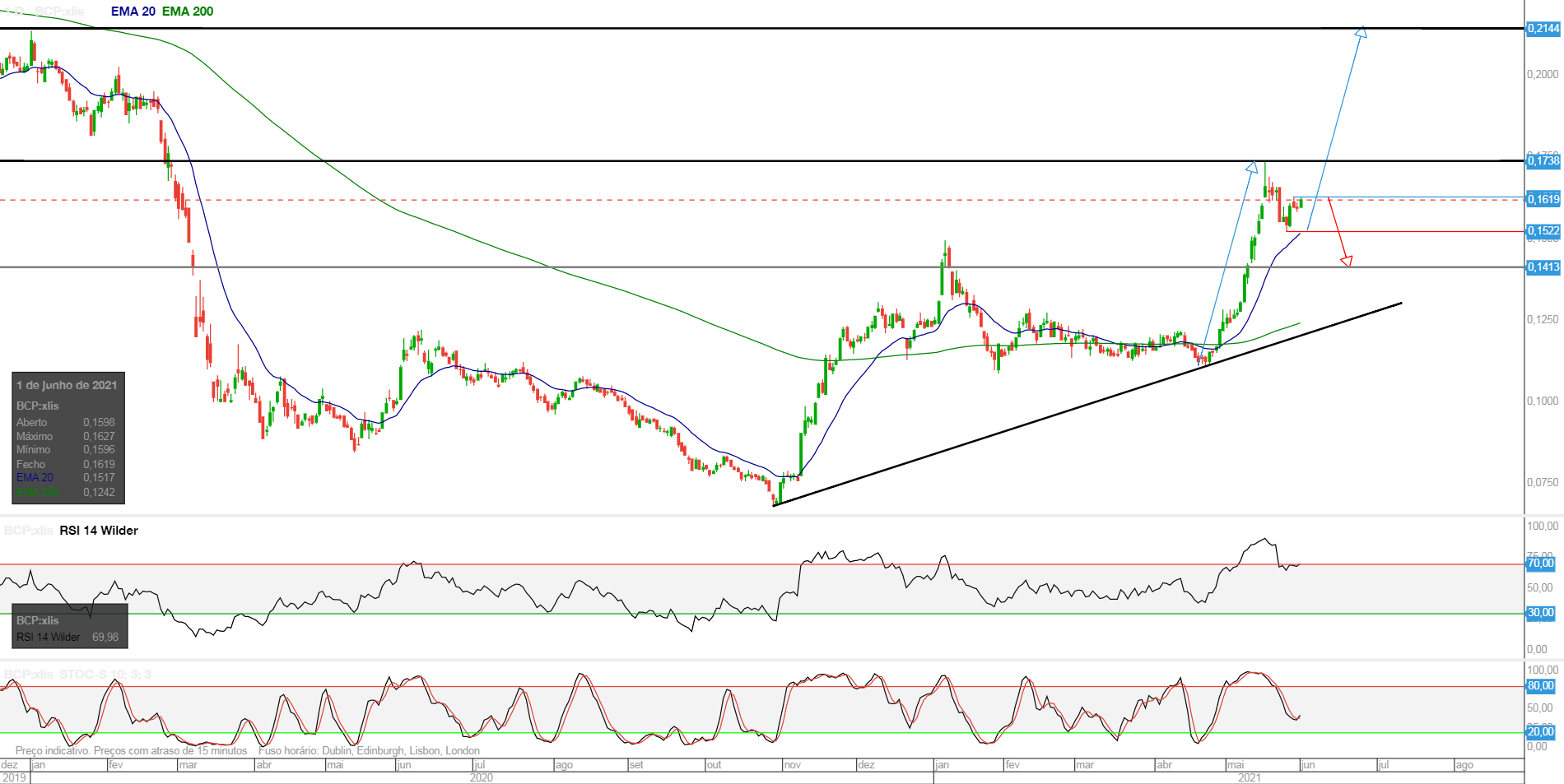 Em qualquer caso, na minha opinião, este movimento não invalida a opinião que tenho que a cotação irá aos 0,18/0,20 até ao final do ano.