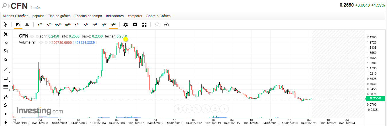 Ainda bem que apresenta s ess e gráfico ao mesmo tempo que comprei Impresa a cofina estava 0,23€. Hoje está 0,2550