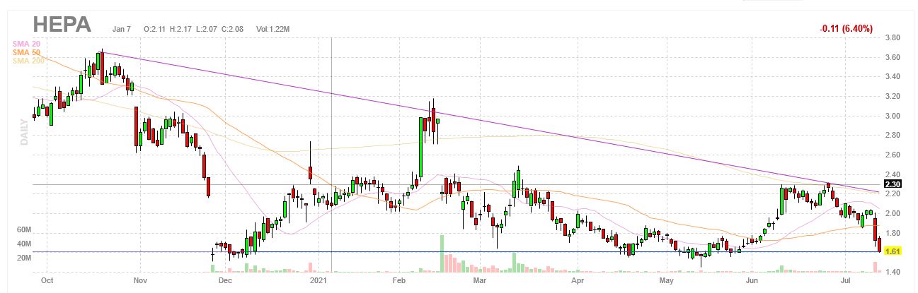 Vou reforçar nos 1,55/1,60. Aqui o gráfico: https://finviz.com/quote.ashx?t=HEPA