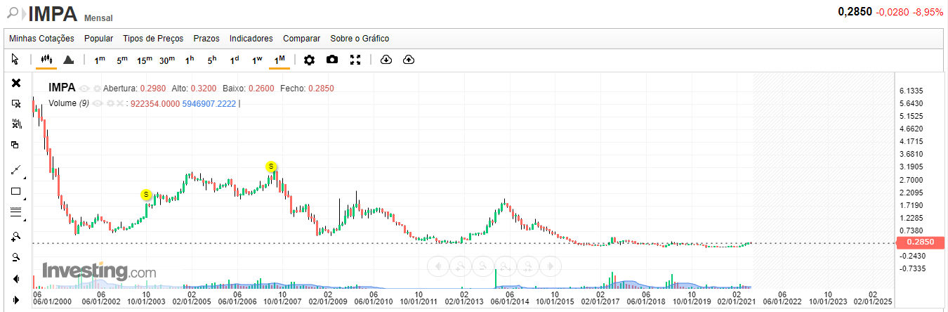 O que disse está correto! Vamos só ver os últimos 3 dias segunda cotação 0,2830 terça a 0,2810 quarta 0,3130 quando apareces a comentar a Impresa hoje que praticamente fechou o mesmo que segunda!.. 00