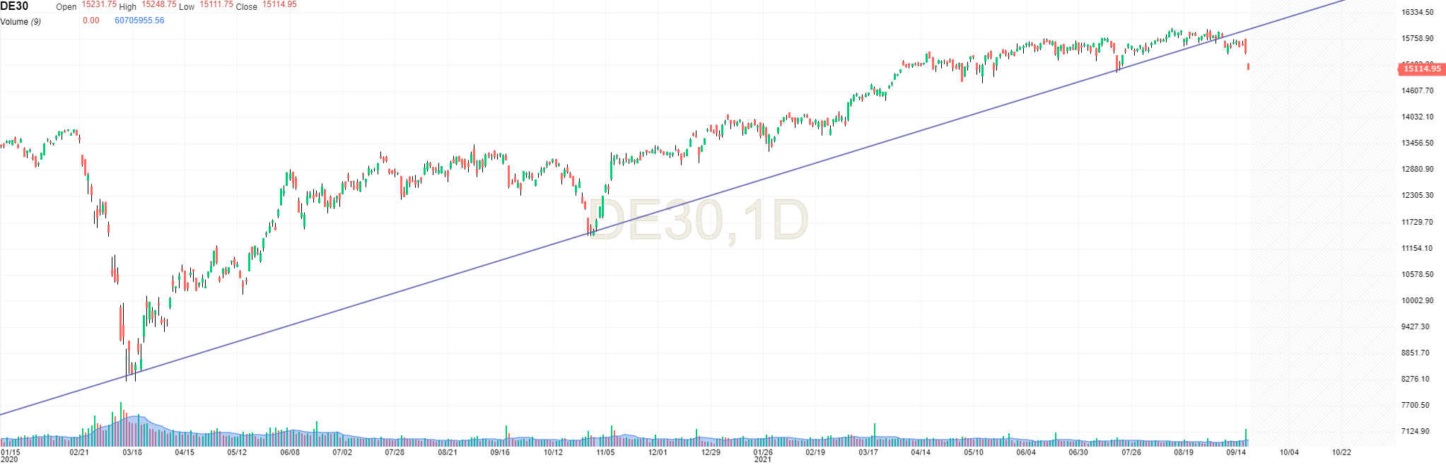 Parece que o suporte vai ceder o que pode deixar o dax bear no MP/LP.