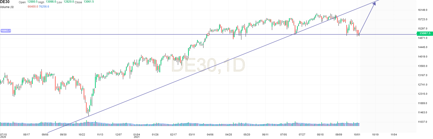 deixo abaixo um gráfico diário do dax 40 com a sua situação técnica.