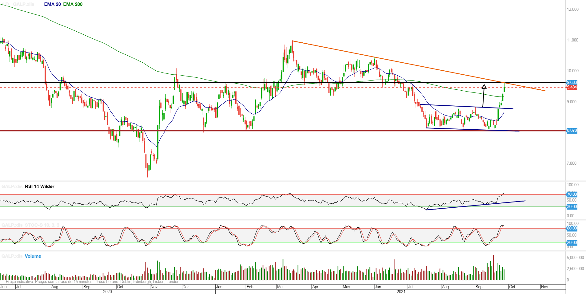 Há ali uma resistência em 9.60 e, se fosse para a passar e seguir caminho já lá teria ido cheirar. Não foi e, portanto, lá fotam elas!