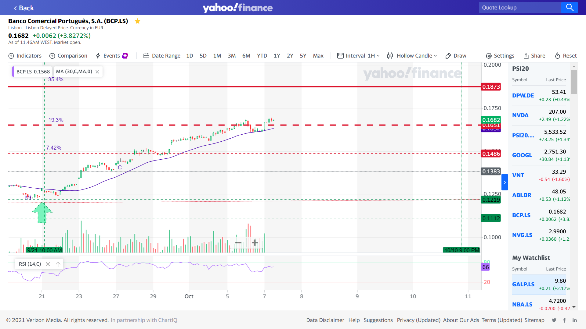 Como eu desenho o movimento: por agora, irá até à zona dos 0,1750, depois retrocede com quedas já significativas tipo 2% para os 0,15/0,16, entretanto saem os resultados em 27 de outubro, e a partir daí arranca de novo para termos o Natal nos 0,20/0,2150. Eu gostava de estar certo...