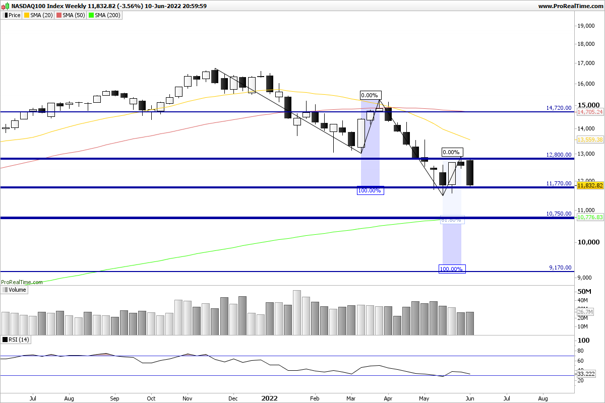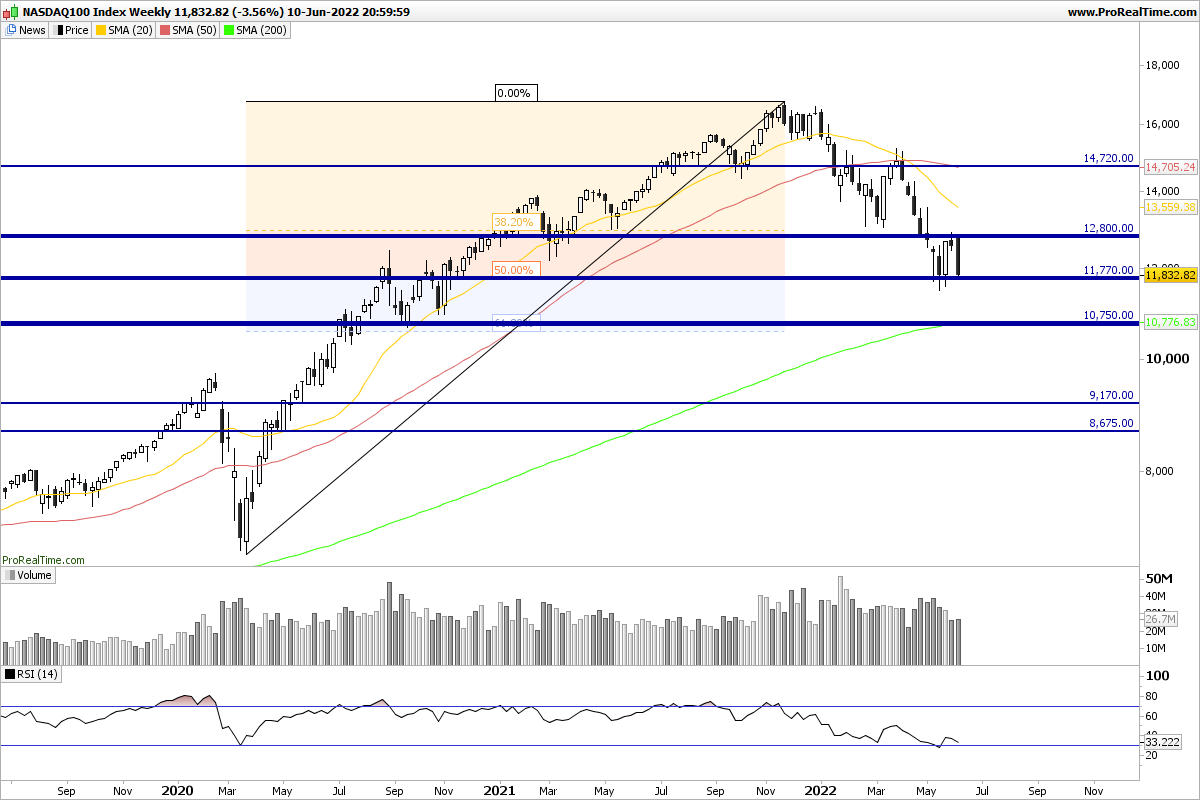 Estamos a chegar a 7 meses de bear market no N100 e pouco ou nada temos de ressaltos, vai em queda a pique. Desde meio de Maio parecia estar a forma uma base temporária, mas nada parece que está a tudo fora e ninguém quer ainda entrar.