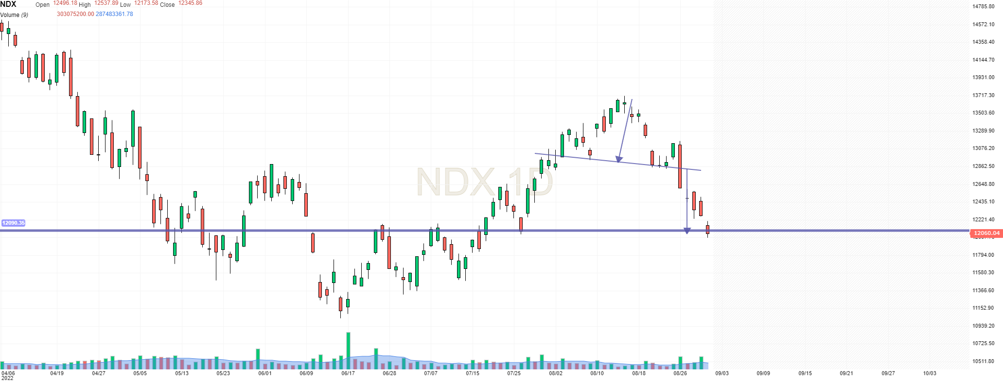 Aqui temos de estar atentos aos 12250, no caso de quebra temos continuação do bear market.