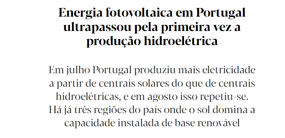 Portugal acordou tarde para a energia renovável fotovoltaica (e que tanta falta faz nestes dias de sol, sem vento e sem chuva).