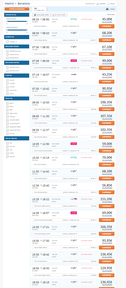 Madrid-Paris 230 euros e nem sequer existe directo são 10 horas...