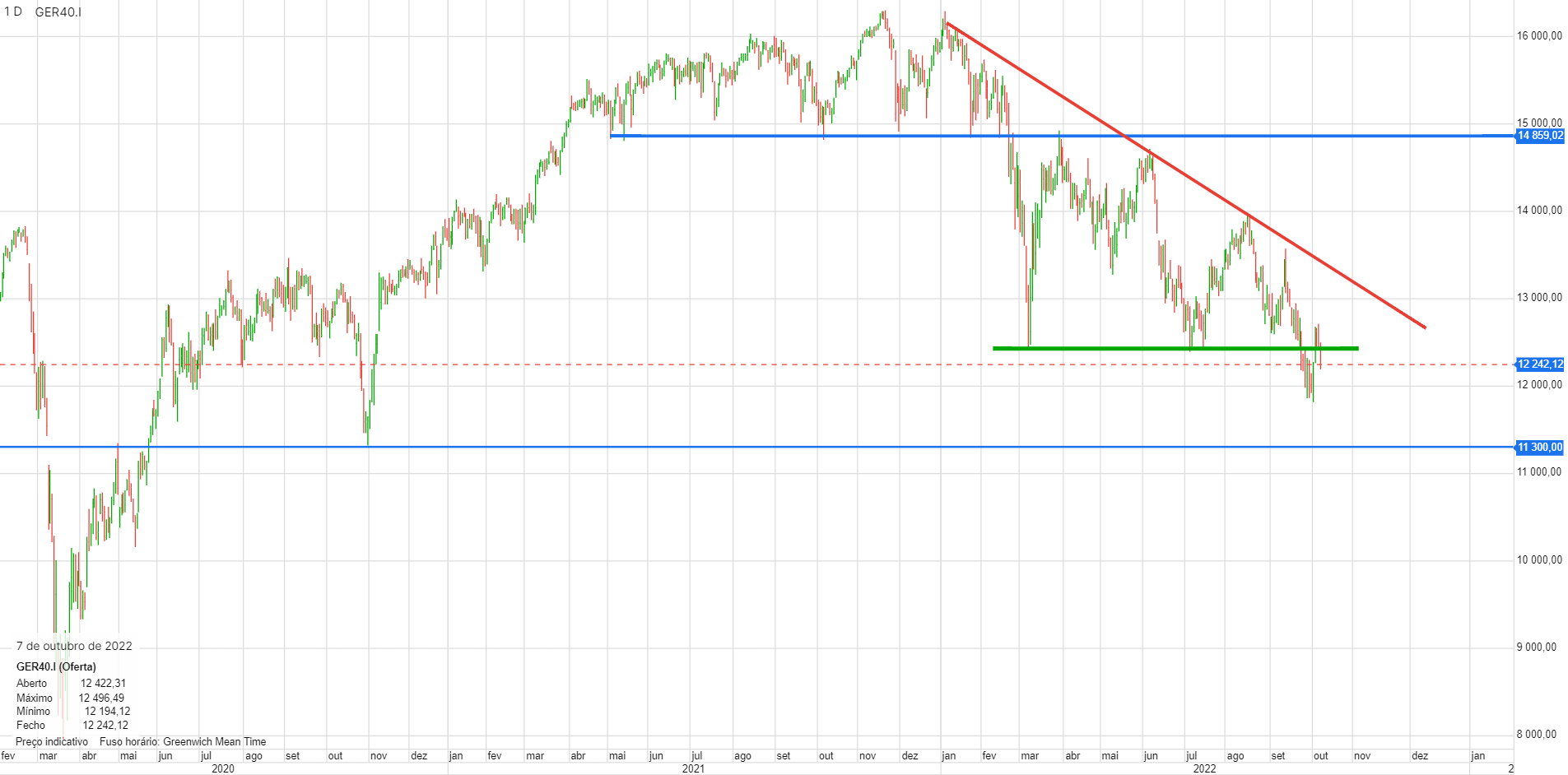 Quebra do suporte. Próximo suporte na zona dos 11300. Se para a semana subisse até aos 12400, era um bom ponto para abrir curtos.