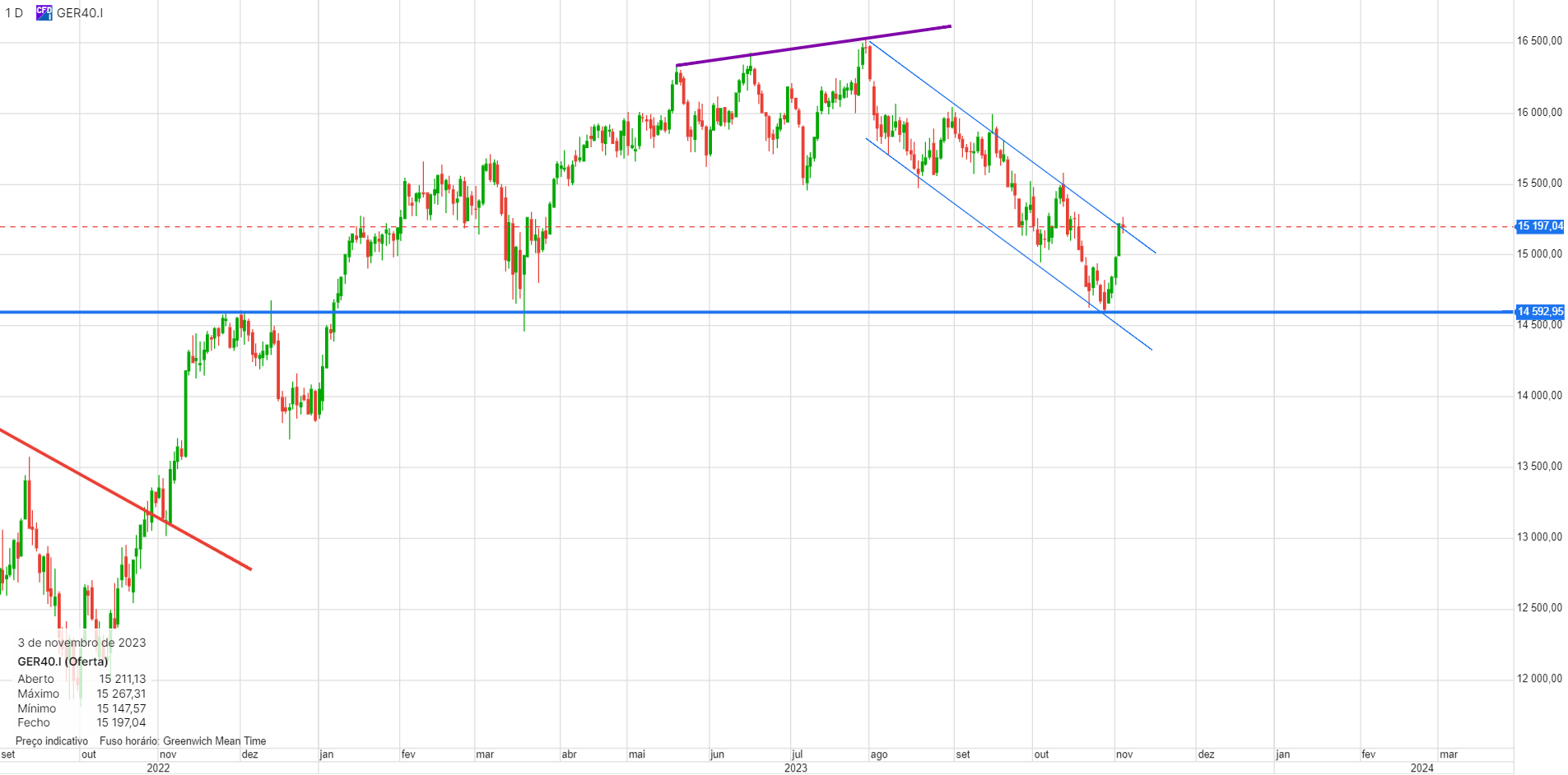 E aqui o DAX se quebra em alta pode dar um salto forte para cima.