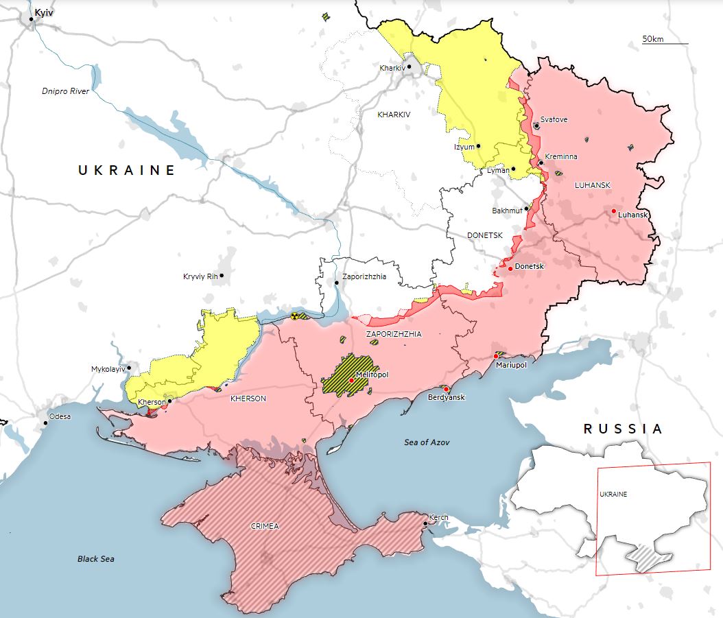 O que me parece obvio hoje é que o objetivo russo principal passava por tomar o poder na Ucrânia instalando em Kiev um governo fantoche. Tendo fracassado passaram ao objetivo mínimo que além de todo o Luhansk, Donestsk e Crimeia passava por ligar a Rússia à Moldávia retirando o acesso da Ucrânia ao Mar Negro transformando-a num proto-estado sem viabilidade. Também isto fracassou, se hoje Kherson já parece uma miragem para a Rússia então o que dizer de Mykolaiv e Odessa?!