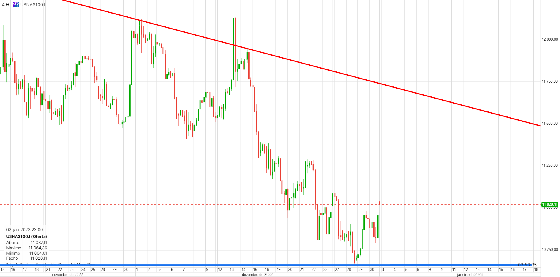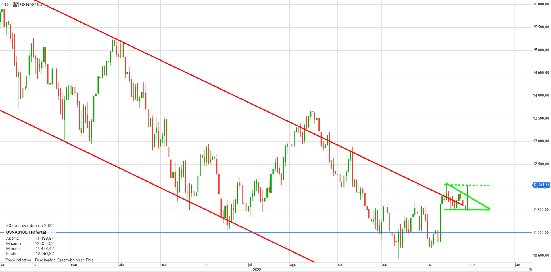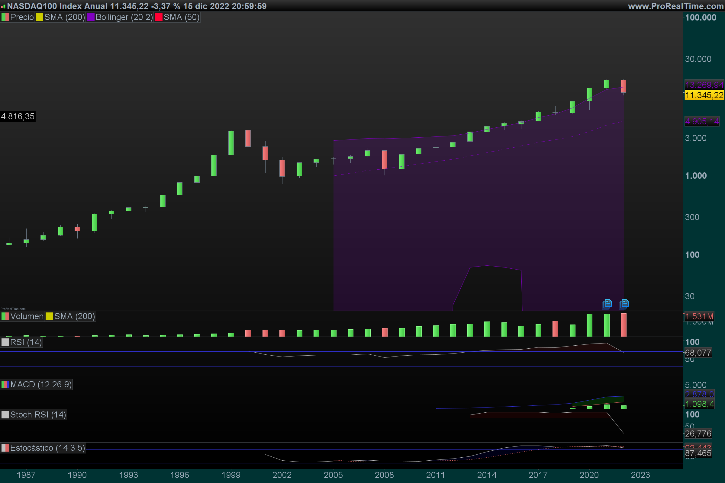 Relativo ao NASDAQ se continuar a descer ou se mantiver este nível a vela anual não vai ter correspondência em padrões de velas.