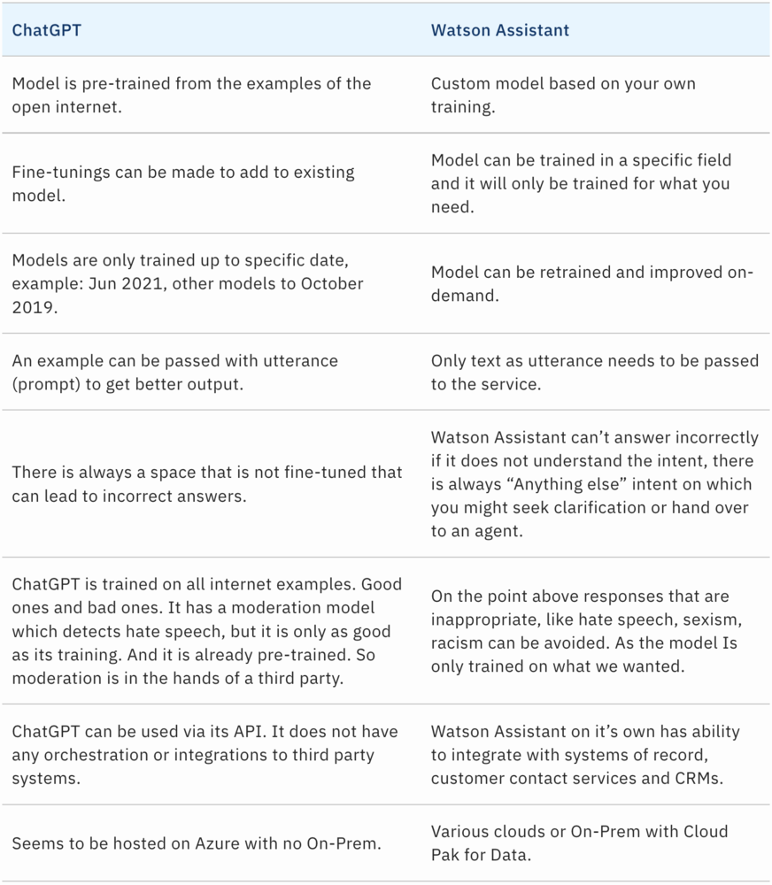 Aqui um pequeno painel que compara as capacidades do Watson da IBM com o ChatGTP.