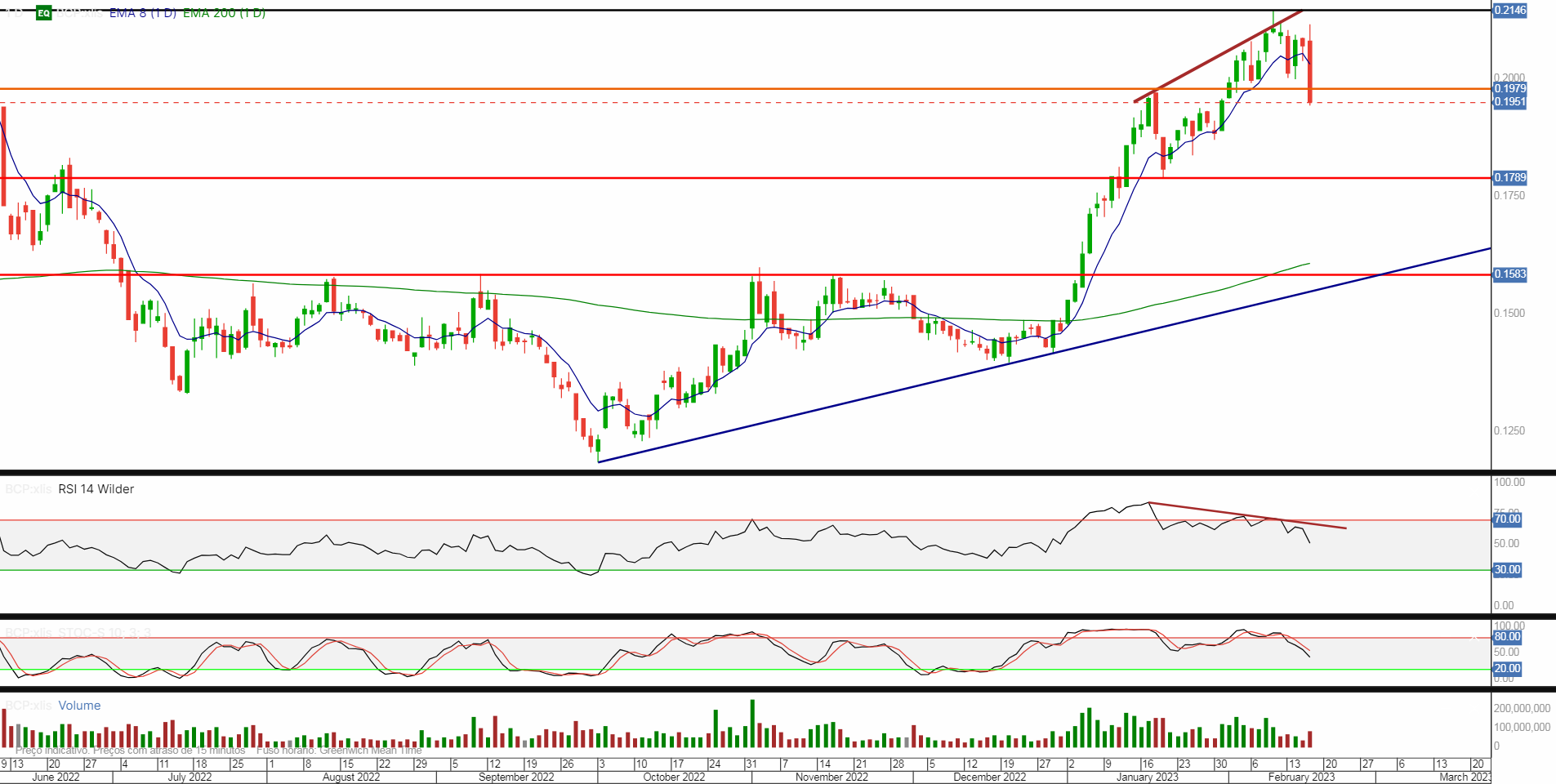 por outro lado, vejo ali uma possível ida à EMA200 no semanal, próximo da zona dos € 0,1880