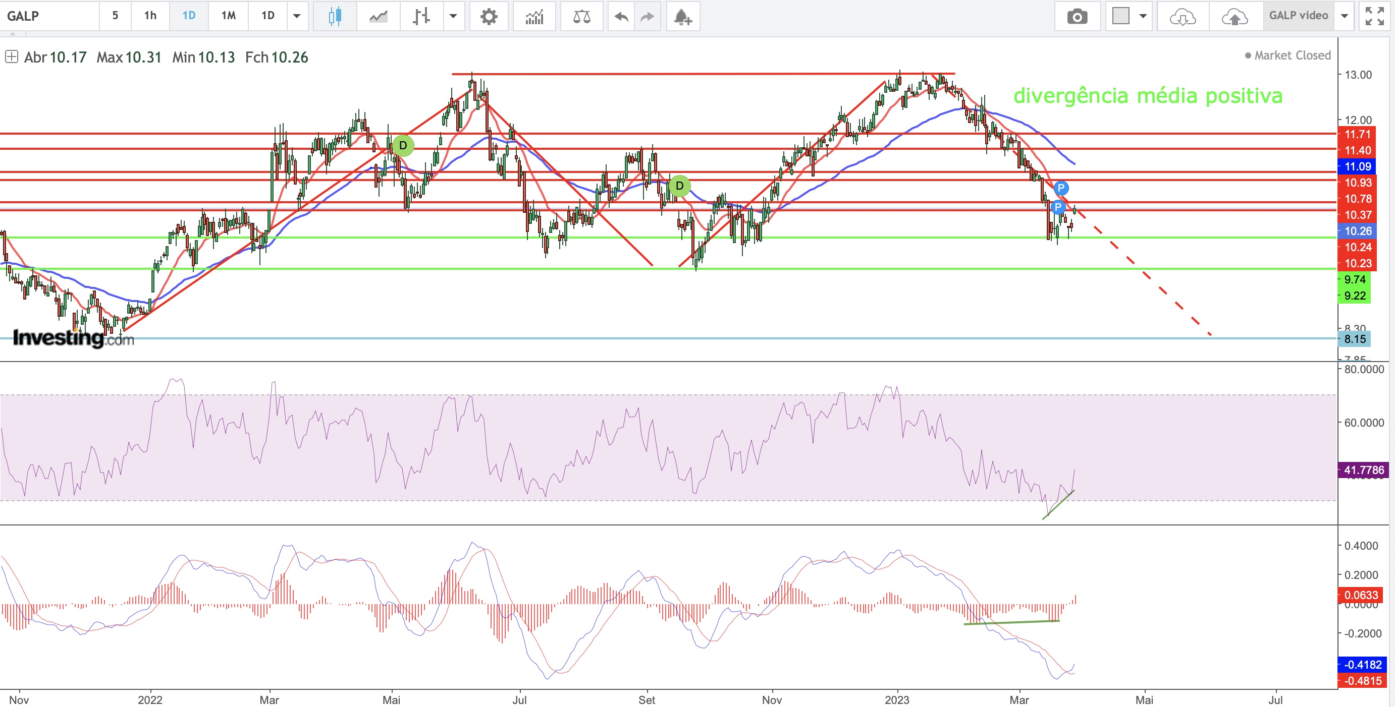 Veremos o que faz o BCE, penso que aliviarão a presão dos juros, mas a entrada aqui é suponho ser das mais seguras, a empresa é sólida (as empresas são sólidas, a Galp é um conjunto de empresas todas rentáveis), apresenta bons lucros, bons dividendos e veremos se o que é não verde hoje, será verde claro amanhã.