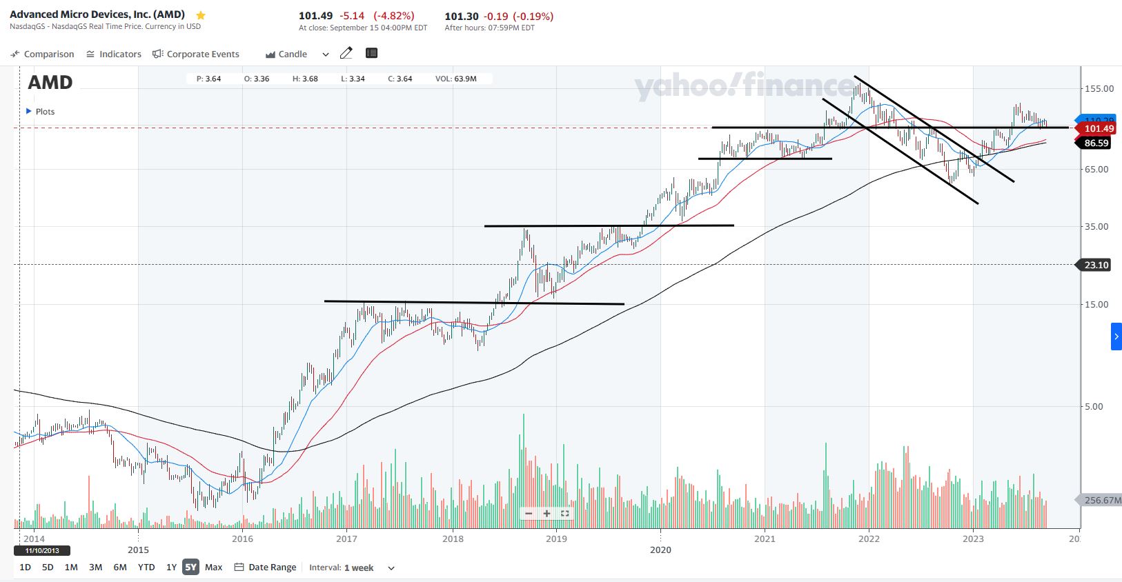 A AMD está em bear market e parece que se aumentar a cadencia de queda.