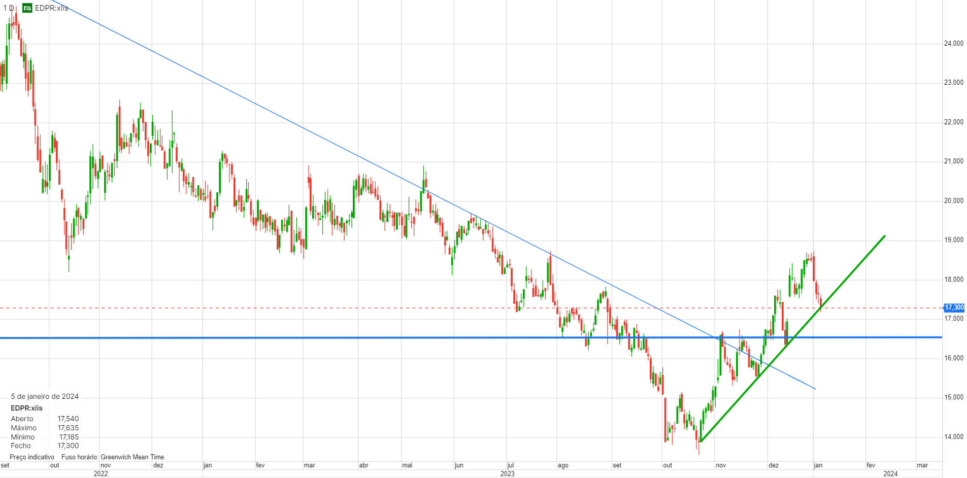 Nem todos gap s fecham, já o 2 novembro por 2cts não fechou completamente, pode ter sido esse o ponto de partida para uma subida com vários gap s, que fechem ou não, a intervalo mais ou menos regular, mas realmente a M200 é bom sinal. Entrei no 17.20, estava a espera de confirmar, vamos ver. Esperamos que a inflação acalme que o levage divida/ebitda previsto de 3.39x para 2024 vai subindo...
