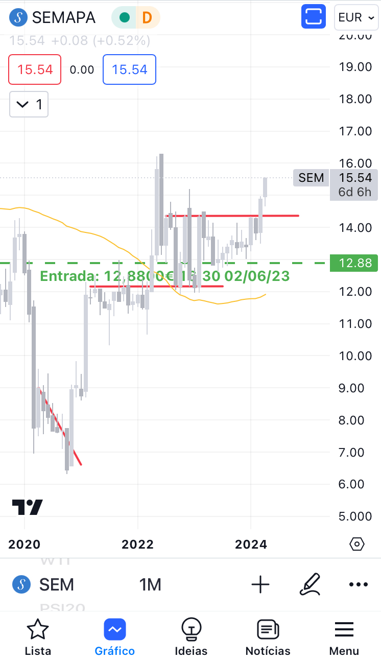 A Sonae não subiu desde junho de 2023. Na verdade, está até mais baixa do que estava, mas acho que pode acelerar e subir mais rapidamente nos próximos meses e ter uma boa subida.