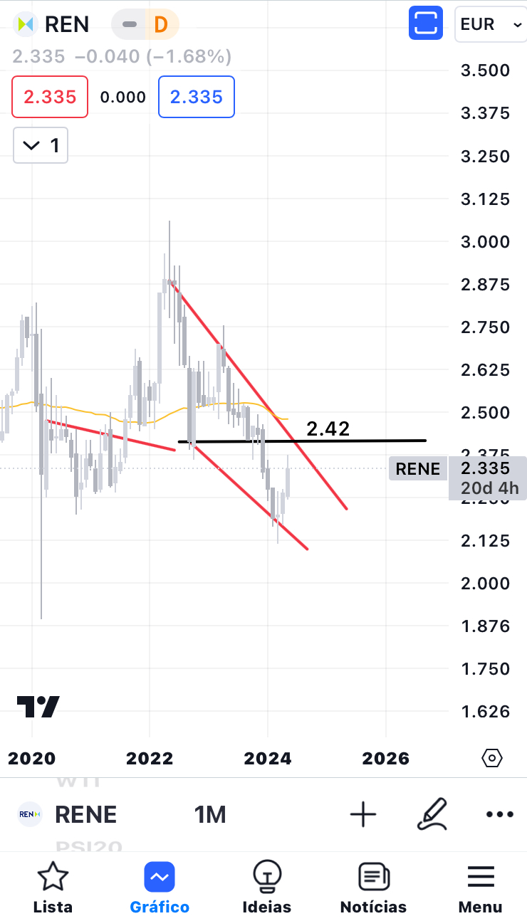 previsor Escreveu:Vou fazer mais um comentário breve, abordando tanto RENE quanto NOS. Ambas têm uma possível cunha descendente, e estou moderadamente otimista em relação a ambas