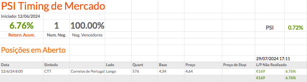 Qualquer estratégia que eu faça na bolsa portuguesa vai, muito provavelmente, ter retorno se a minha análise ao índice PSI estiver certa, como tem estado. O objetivo não é apenas ter retorno, mas ter o máximo retorno possível.