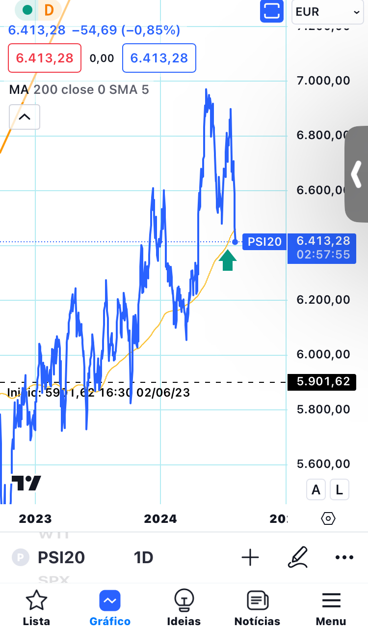 O PSI parece também ter encontrado suporte na ma200 tal como o nasdaq100 e outros índices