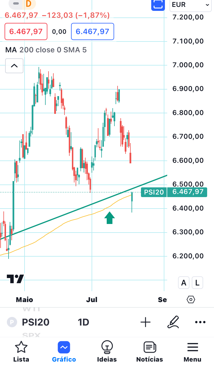 O PSI parece também ter encontrado suporte na ma200 tal como o nasdaq100 e outros índices