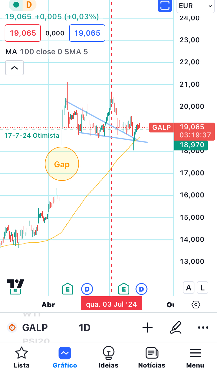 Para já, não vou fazer mais comentários, mas se alguém quiser que comente alguma ação, pode pedir. Fiz estes comentários mais por causa da JMT e também da GALP, porque achei que as linhas faziam mais sentido com os gráficos ajustados. No entanto, noutras situações, funcionou melhor com gráficos não ajustados.