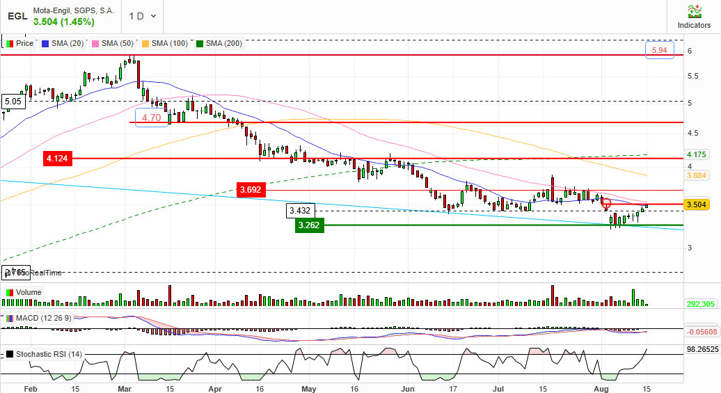 a EMA de 50 está nos € 2,58, mas, não revela que o preço possa ir aos € 2,58.