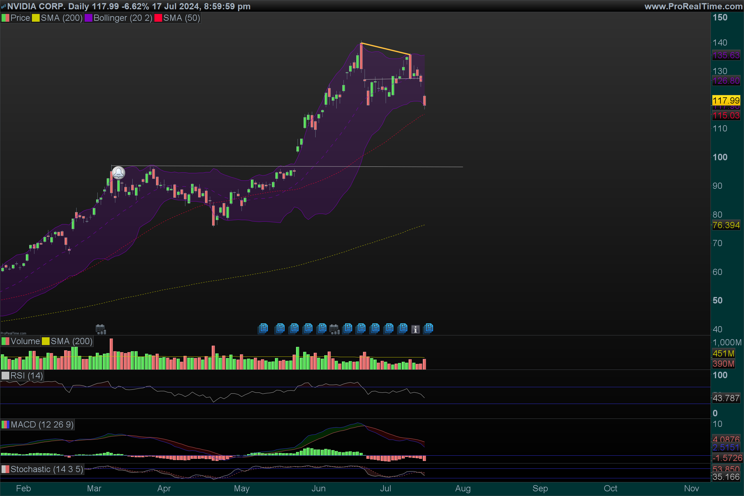 - **MA200:** $67.76 - As médias móveis indicam um forte momentum positivo nas ações da Nvidia.