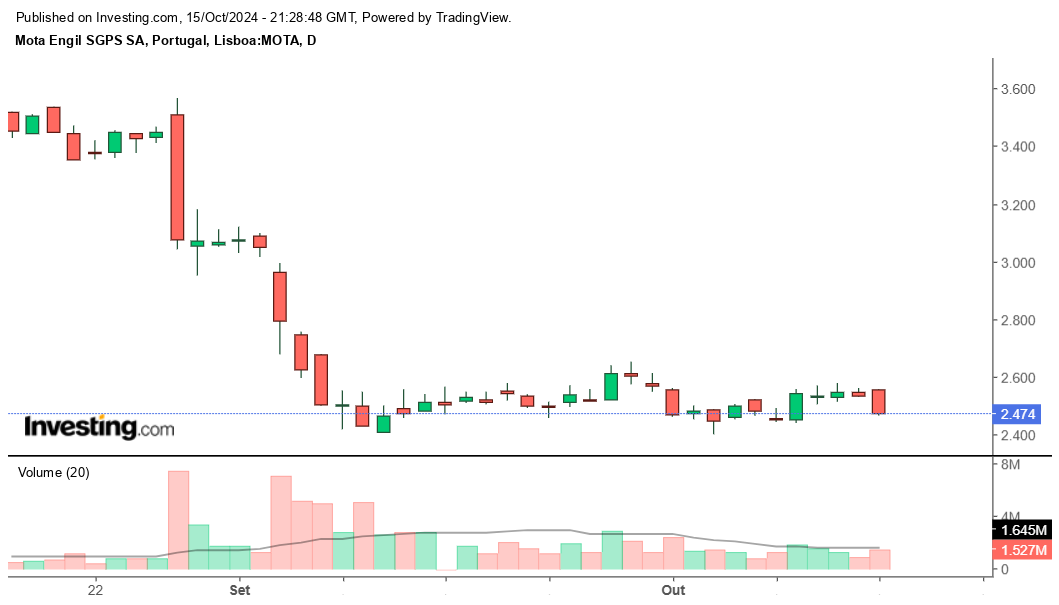 Mota-Engil is down 27% since it released results for the first half-year on Aug. 28 and short sellers ramped up bets against the stock. Muddy Waters Capital Domino Master Fund reported a short position of 1.99 million shares, or 0.65% of the company’s stock, as of Sept. 2.