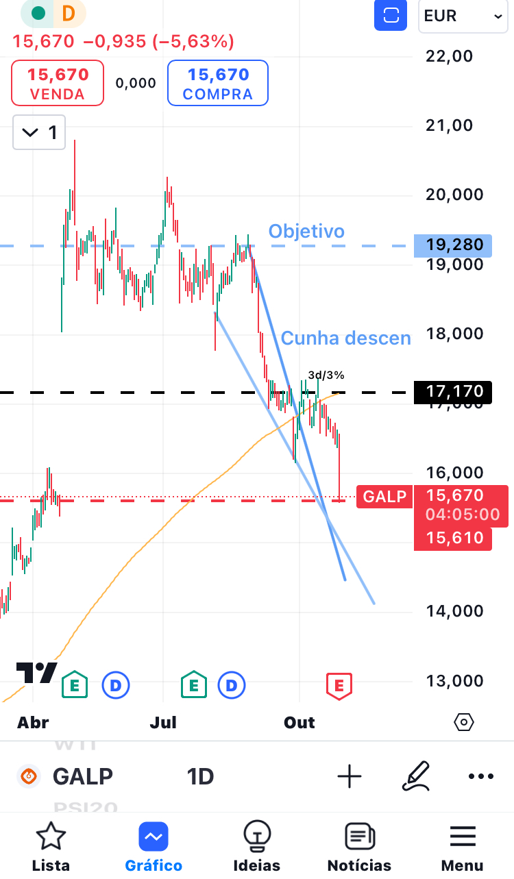 Em relação à Galp, ainda não tenho uma opinião clara sobre a direção que vai ter e por isso não vou dar um palpite. Mas digo que existem ações que fecharam o gap e subiram logo a seguir, outras que não fecharam o gap todo e também subiram, e outras que fecharam o gap e continuaram a descer, tanto em gráficos com dividendos como sem. Não há uma única coisa que aconteça