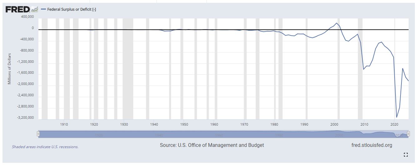 Oficialmente o gráfico da FRED com os défices.