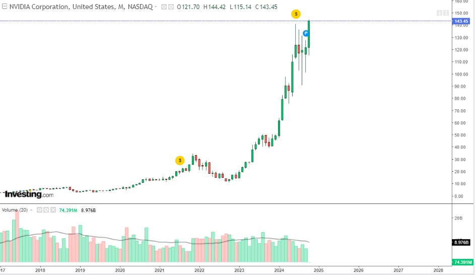 Assim que passar 143 o próximo é encostado aos 200. É muito mais provável agora que chegou aqui sem um nível elevado de sobracompra. Só a eleição de Trump poderia complicar este Bull e levar a uma correção.
