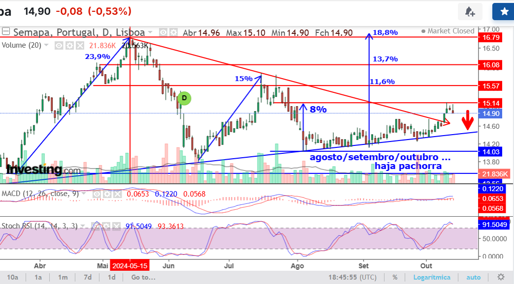 Ficou a 6 centimos dos 15.60 esta manha e está com volume alto para a altura do dia.