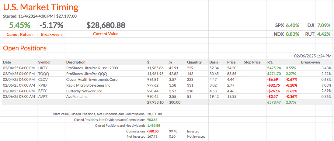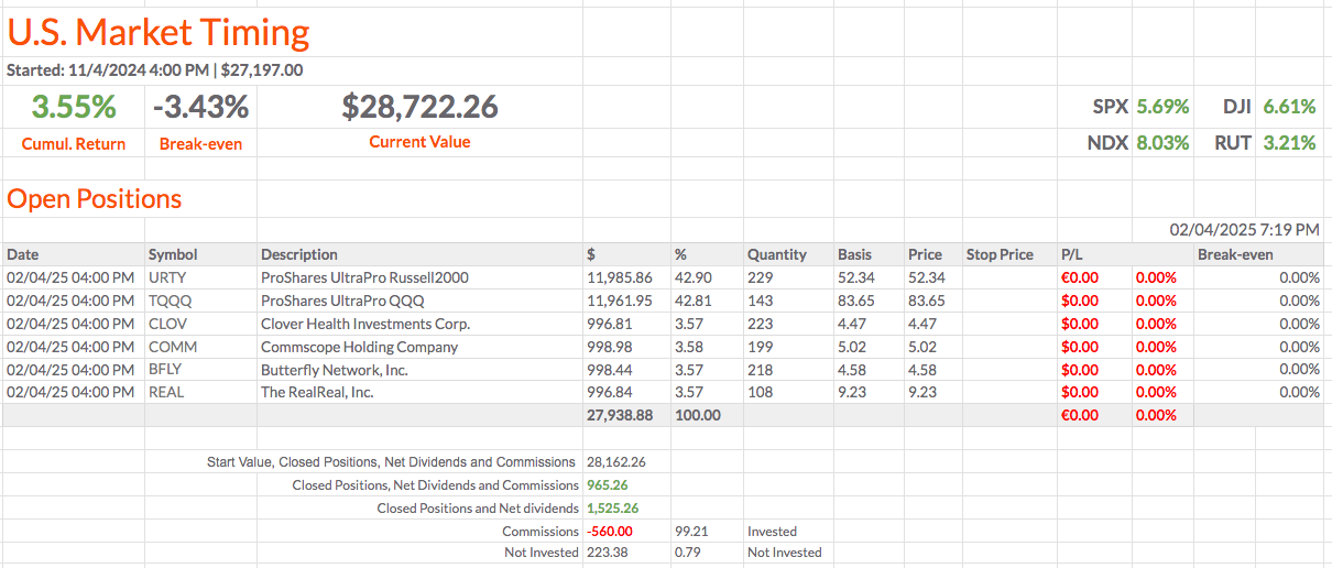 Últimos Sinais de Negociação para a Proxima Abertura - US Market Timing