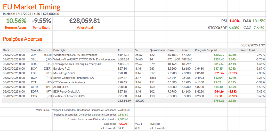 Coloquei stops nas ações e vou fechar 3LV, 3EUL e 3DXE e abrir uma posição curta no DAX