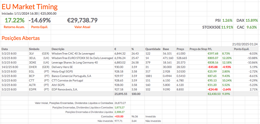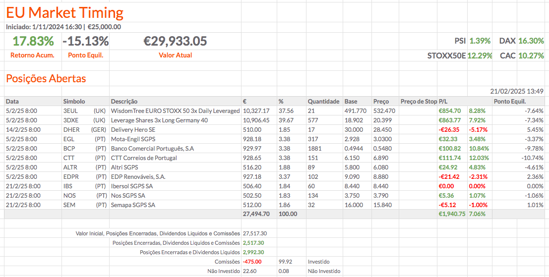 Só para explicar melhor em relação às carteiras, elas continuam, mas não vou fazer como estava a fazer, com várias entradas e saídas para tentar acertar no timing. Isso não quer dizer que nunca vou fazer timing. Posso vir a fazer, mas na maior parte do tempo não vou fazer e posso estar vários meses sem fazer nada