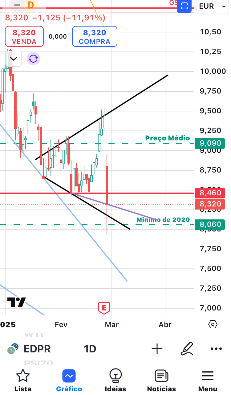 Pelo lado positivo, a minha última análise ao PSI foi perfeita. Disse que o PSI ultrapassou a MA200, uma referência importante, e que achava que iria continuar acima da MA200 e que ela podia funcionar como suporte e subir depois, e que a maioria das ações iriam subir, incluindo as que estavam com mais dificuldade em subir. E foi exatamente isso o que aconteceu, a MA200 funcionou como suporte logo no dia seguinte e subiu, e a EDP e EDPR também subiram.