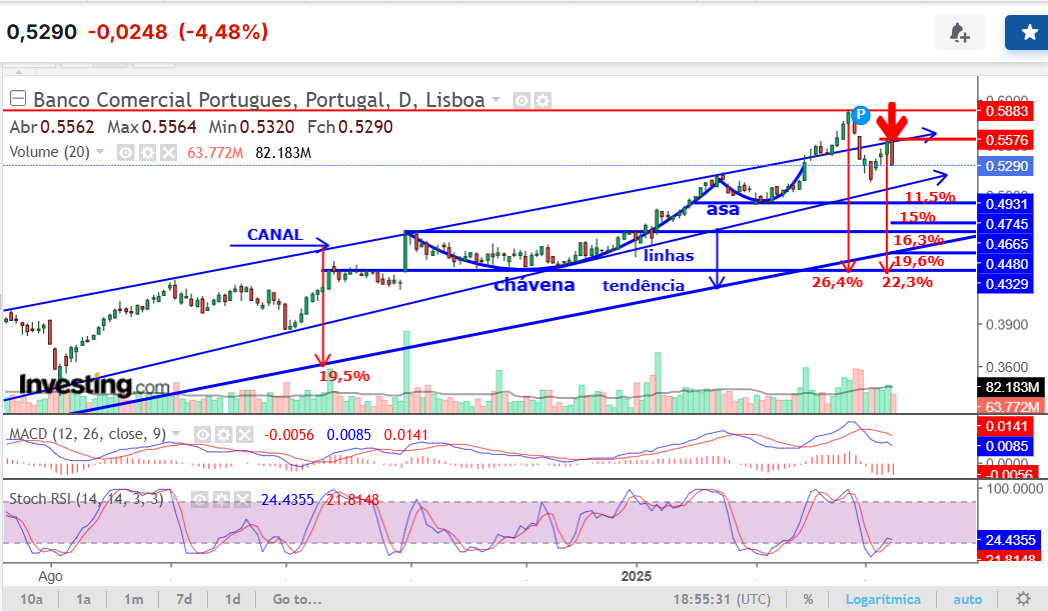 Vai ser um osso duro de roer os 0.5635€, mas se ultrapassa esta resistência julgo que teremos condições para beijar o máximo recente.