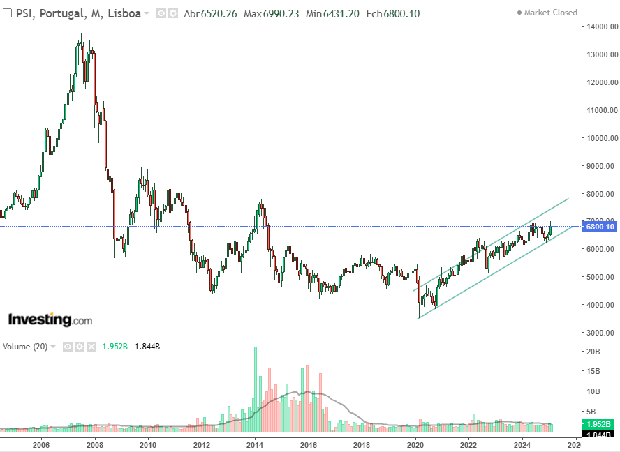 Apesar de a economia e divida portuguesa parecerem estar em boas trajectórias de crescimento, o nosso psi quebrou a lta que vinha de 2020 em out/nov 2024. Pensej que era apenas uma correcção exagerada pela pessima performances de uns poucos títulos (EDPs essencialmente) mas nos ultimos dias bateu na ma200 diaria e nao conseguiu passar. Macd e stoch inverteram.