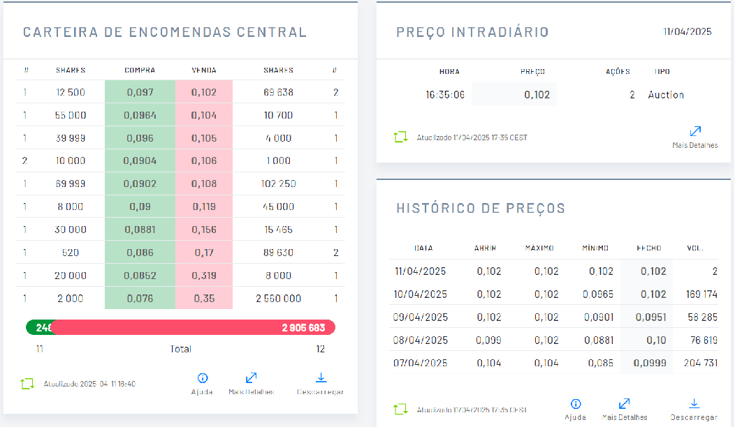 Uma ordem de 1000k esteve pouco tempo como "tampão" nos 0,10€, sendo retirada logo que a cotação subiu!