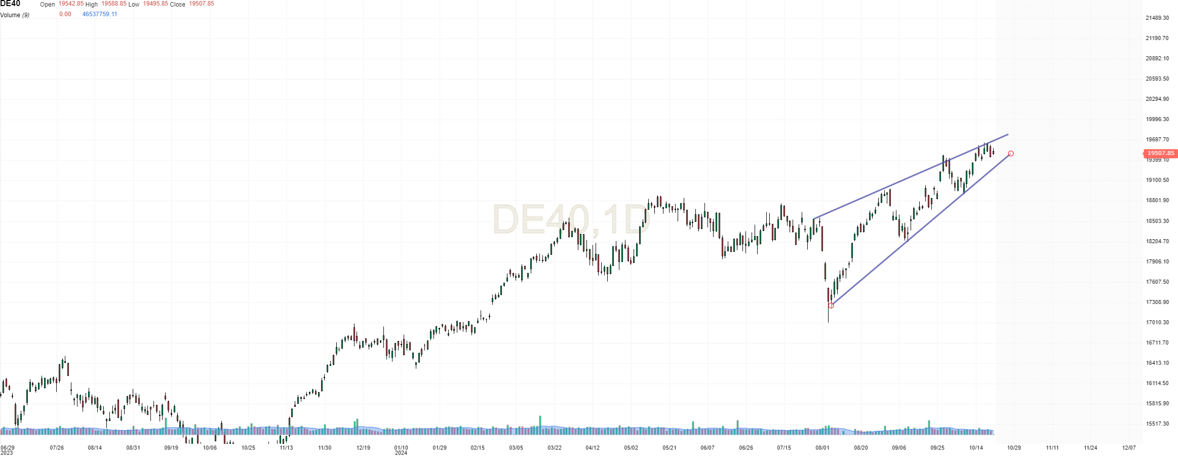 O DAX continua extremamente bullish com um padrão tang x.