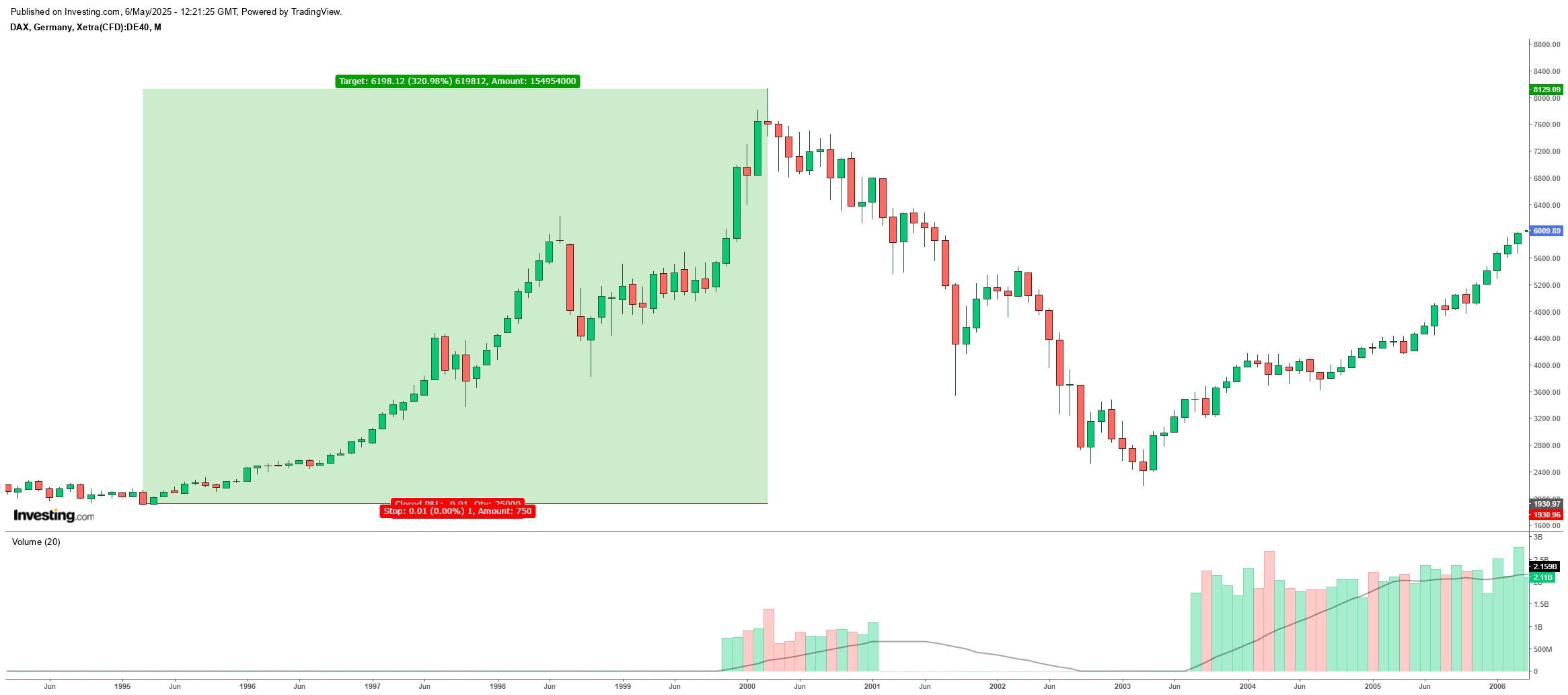 Mas existe um precedente de 300% em 5 anos, daí o meu target nos 50k, claro que o resultado depois esteve á vista com um ajuste anulou a bolha em 100% e demorou mais de uma década a recuperar.