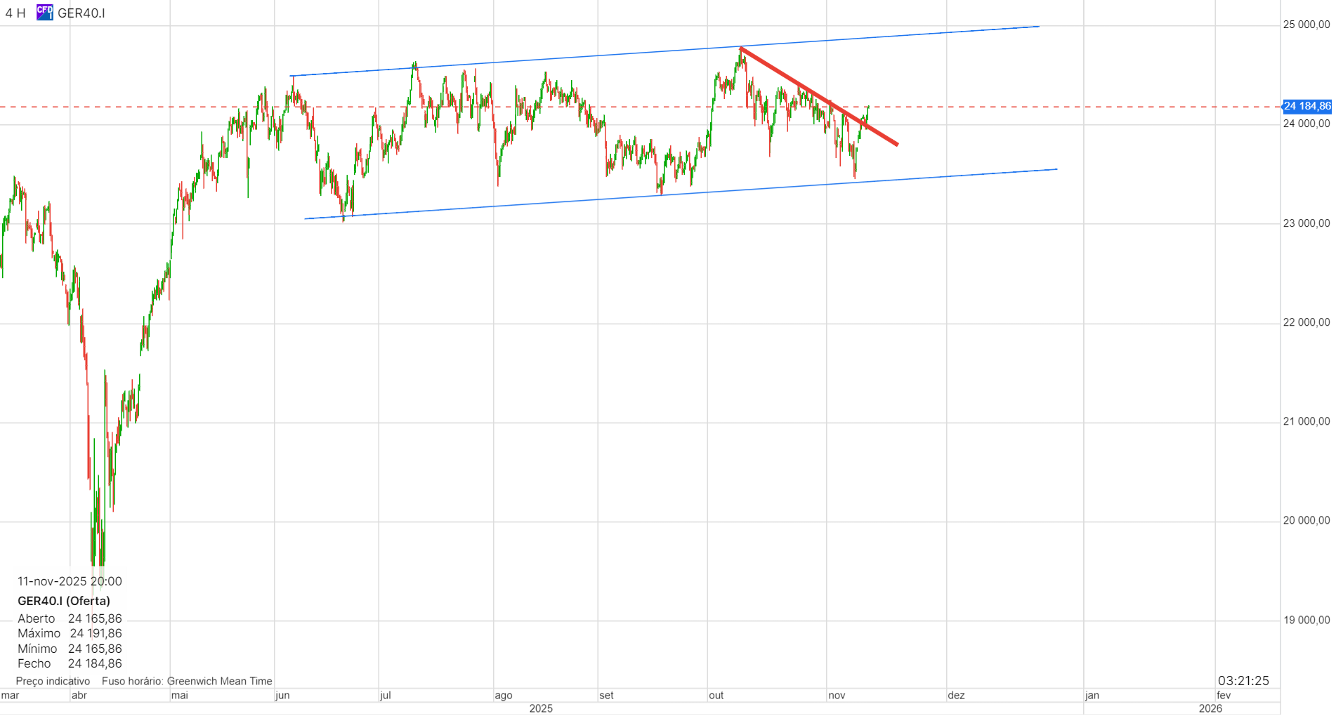 O Dax anda agora neste canal ligeiramente descendente e sexta era dia de meter uns curtos. Não o fiz, e não tenho posições.